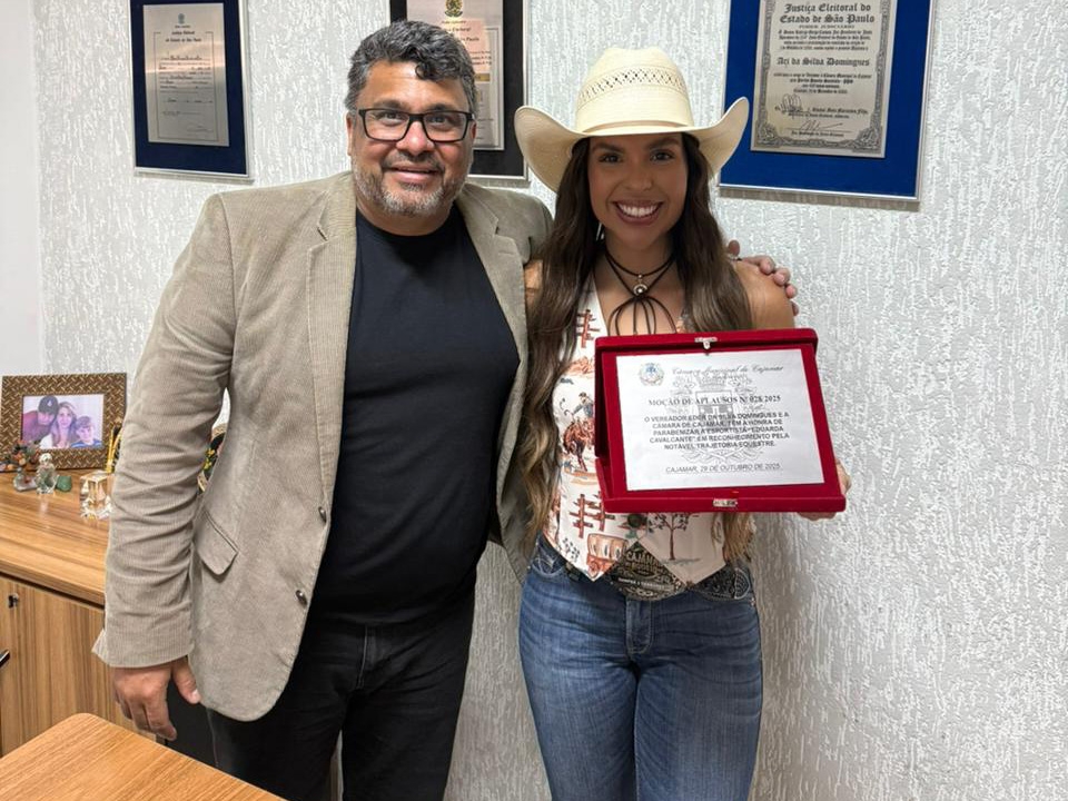 7 de Novembro - A Câmara Municipal de Cajamar, por meio da Moção de Aplausos nº 28/2025 de autoria do Vereador Edinho Domingues prestou homenagem à jovem Eduarda Cavalcante, em reconhecimento à sua notável trajetória e conquistas no esporte equestre. A homenagem, destaca o talento, a dedicação e o amor de Eduarda pelo universo dos cavalos e pela tradicional prova dos Três Tambores.